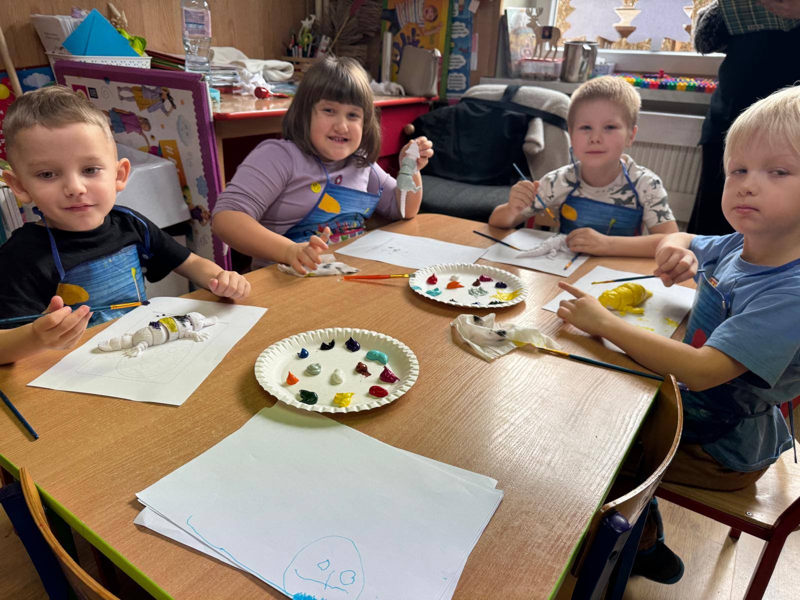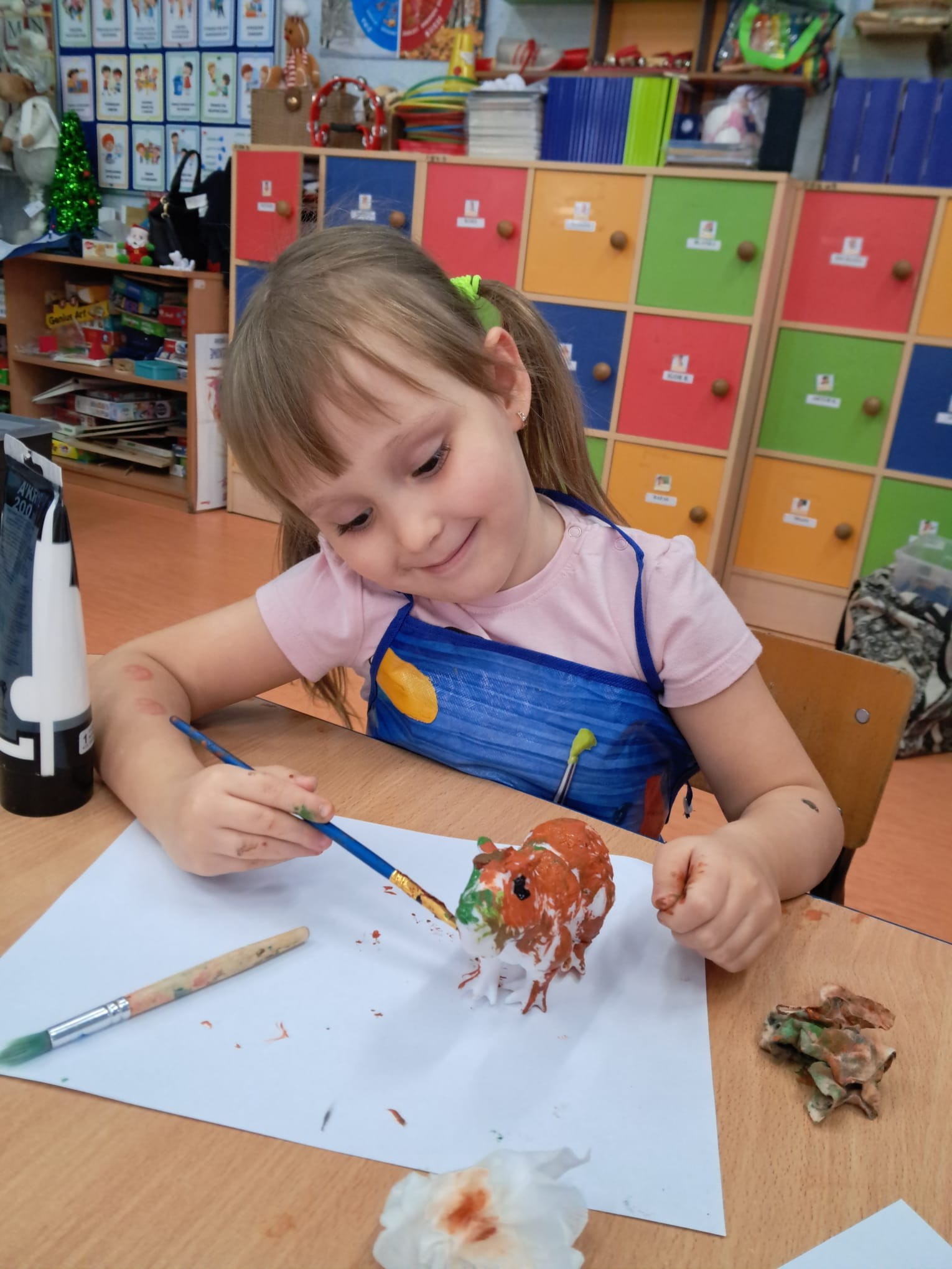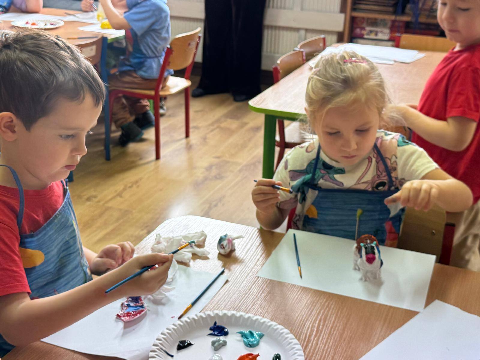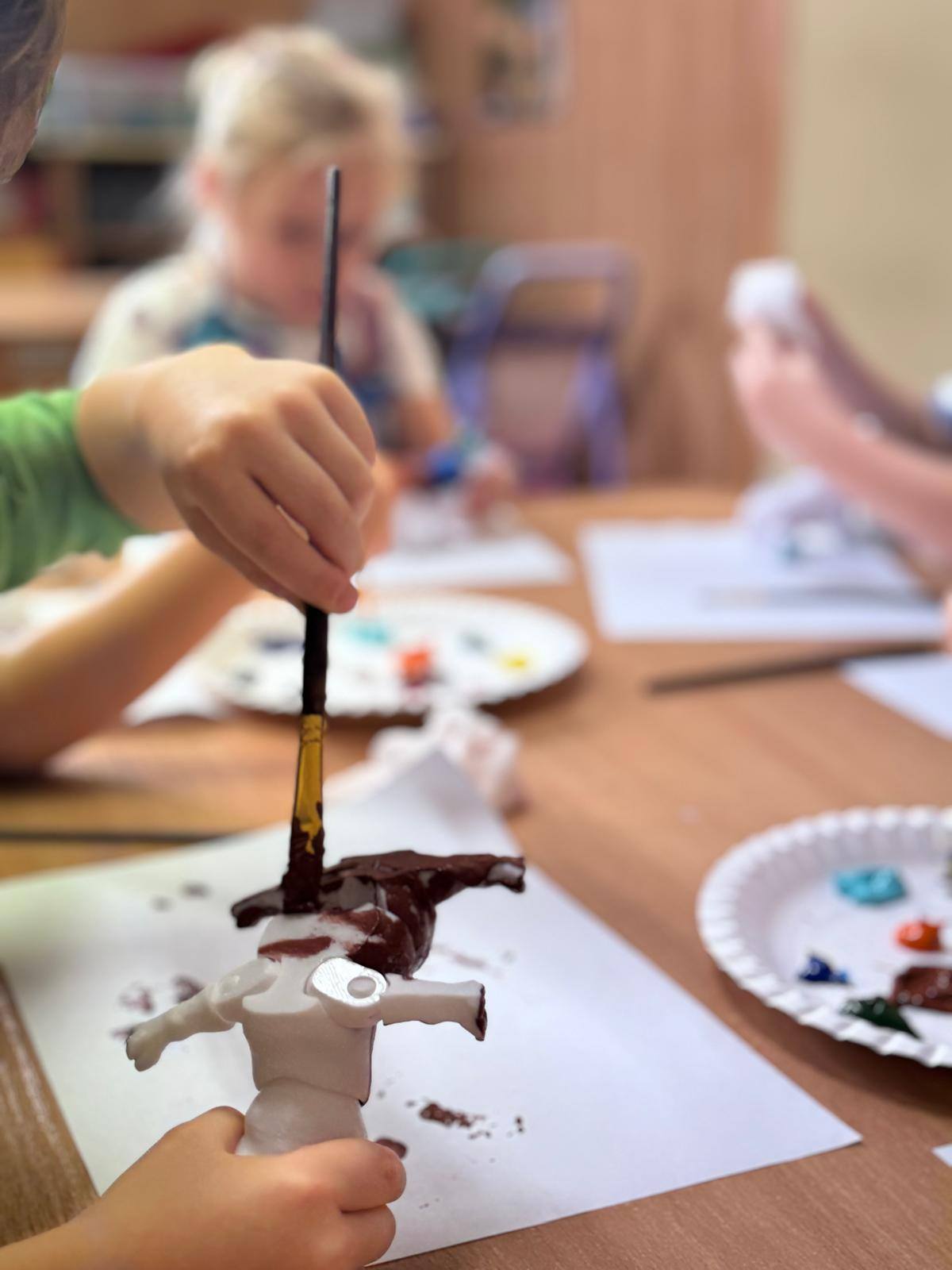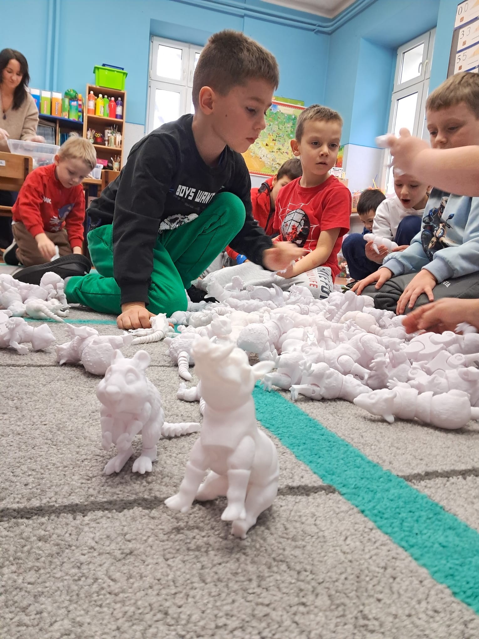 Jednym z najbardziej twórczych momentów warsztatów było malowanie trójwymiarowych figurek zwierzątek. W ten sposób dzieci mogły nie tylko rozwijać wyobraźnię i umiejętności plastyczne, ale także w praktyczny, symboliczny sposób oswajać własne emocje. Pani Ania pokazała im różne techniki radzenia sobie z napięciem, złością czy smutkiem — poprzez oddech, ruch i chwilę uważności.