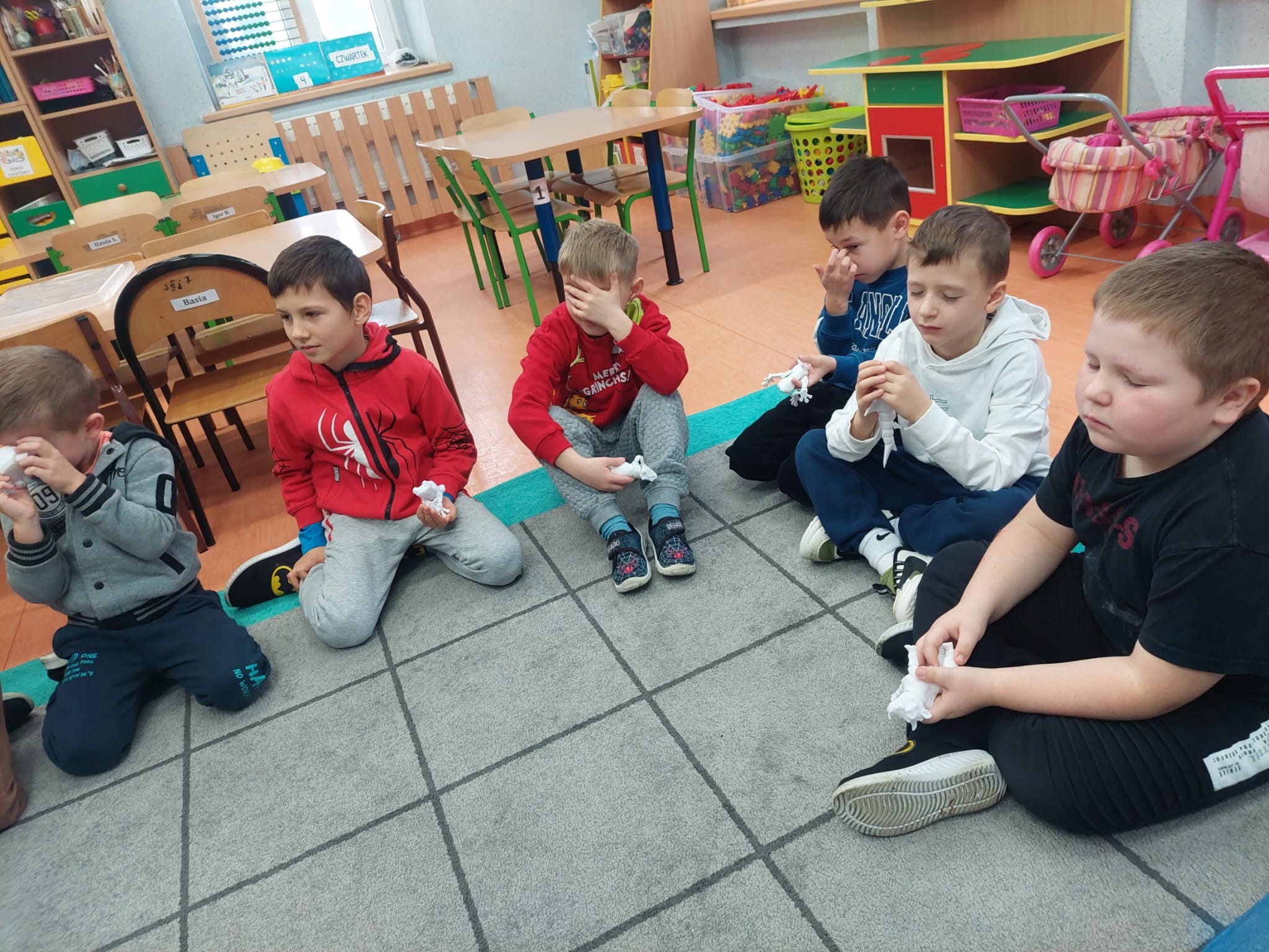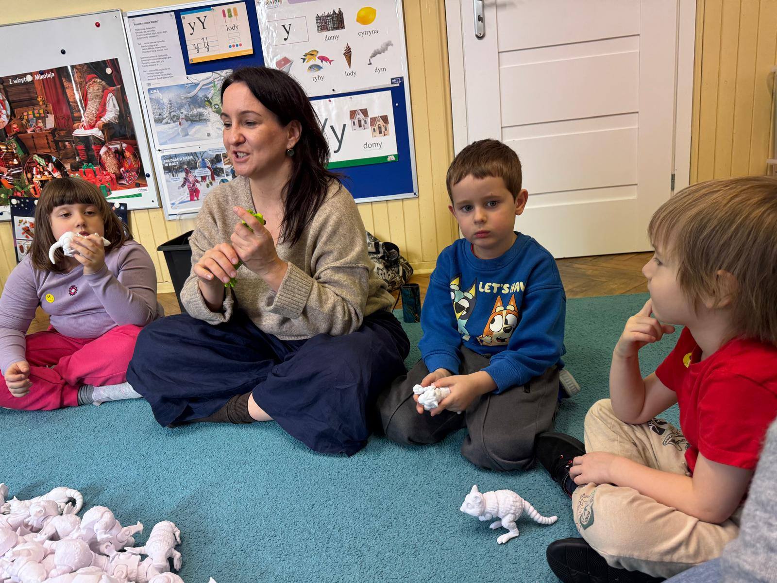 Dzisiejszy dzień w naszym przedszkolu był pełen wyjątkowych przeżyć, ponieważ pani Ania Melek — pedagog, terapeuta i trenerka umiejętności społecznych — poprowadziła inspirujące warsztaty pt. „Zwierzątka mocy”. Dzięki połączeniu sztuki, oddechu i uważności dzieci odkrywały swoją wewnętrzną siłę oraz uczyły się, jak ją wykorzystywać w codziennych sytuacjach.