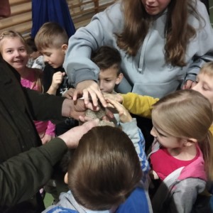 Największe emocje wzbudziło spotkanie z „małymi przyjaciółmi” naszego gościa. Pan Andrzej przywiózł ze sobą kilku swoich podopiecznych, których mogliśmy nie tylko zobaczyć z bliska, ale także posłuchać o ich zwyczajach, diecie i charakterystycznych cechach. Dzieci z ogromnym zainteresowaniem obserwowały te wyjątkowe zwierzęta, a niektóre miały nawet odwagę, aby je pogłaskać!